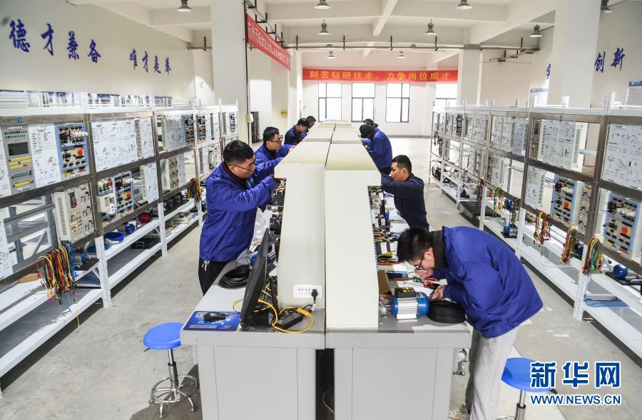 2020年12月6日,浙江省杭州市臨安區(qū)總工會(huì)組織的“工匠杯”電工技能大賽舉行。這是技術(shù)工人在參加電工技能比賽。新華社記者 徐昱 攝