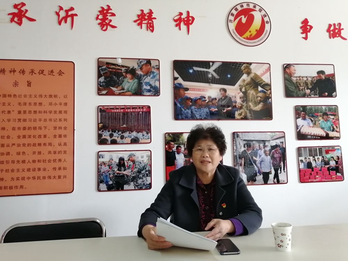 2016年,于愛梅發(fā)起成立沂蒙精神傳承促進會,承擔起傳承、弘揚沂蒙精神的重任,現(xiàn)有會員300余人。走訪慰問部隊哨所、各地開展宣講報告,年近七十的于愛梅足跡已遍布大半個中國。