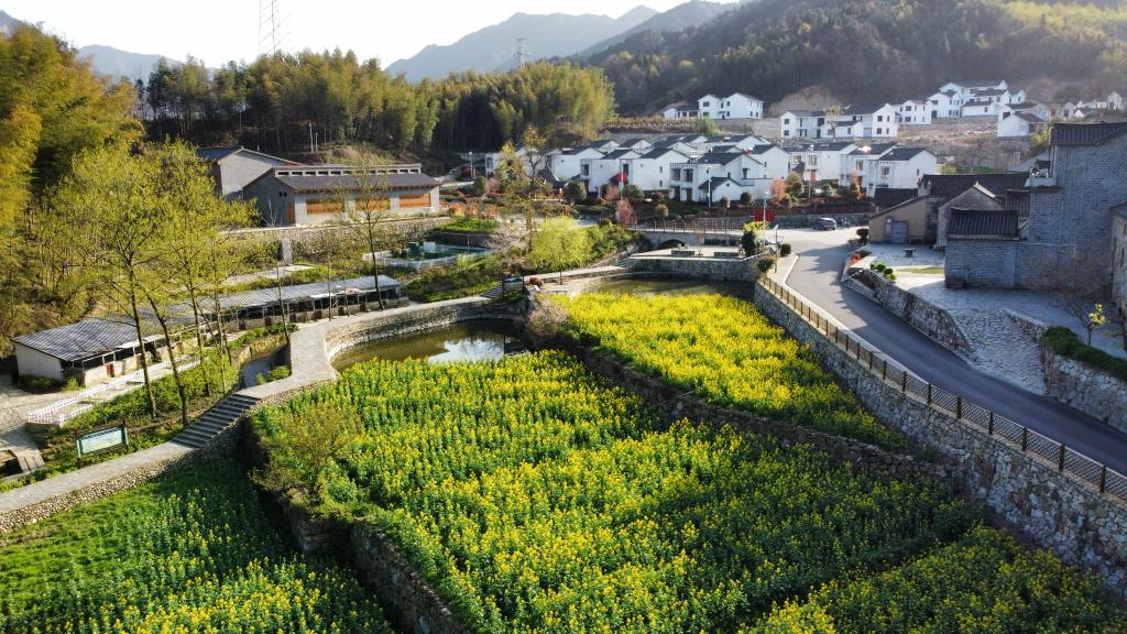 這是3月24日記者用無人機拍攝的金寨縣大灣村春景。(新華社記者陳諾 攝)