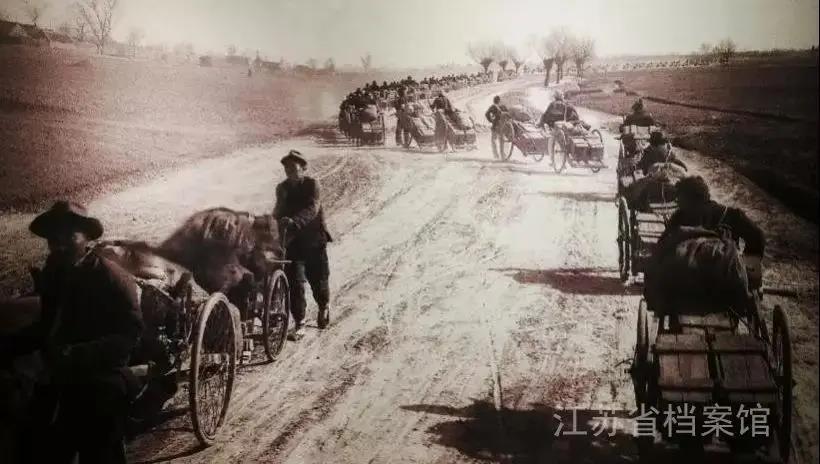 淮海戰(zhàn)役期間,浩浩蕩蕩的人民支前大軍。圖片來(lái)源:江蘇省檔案館
