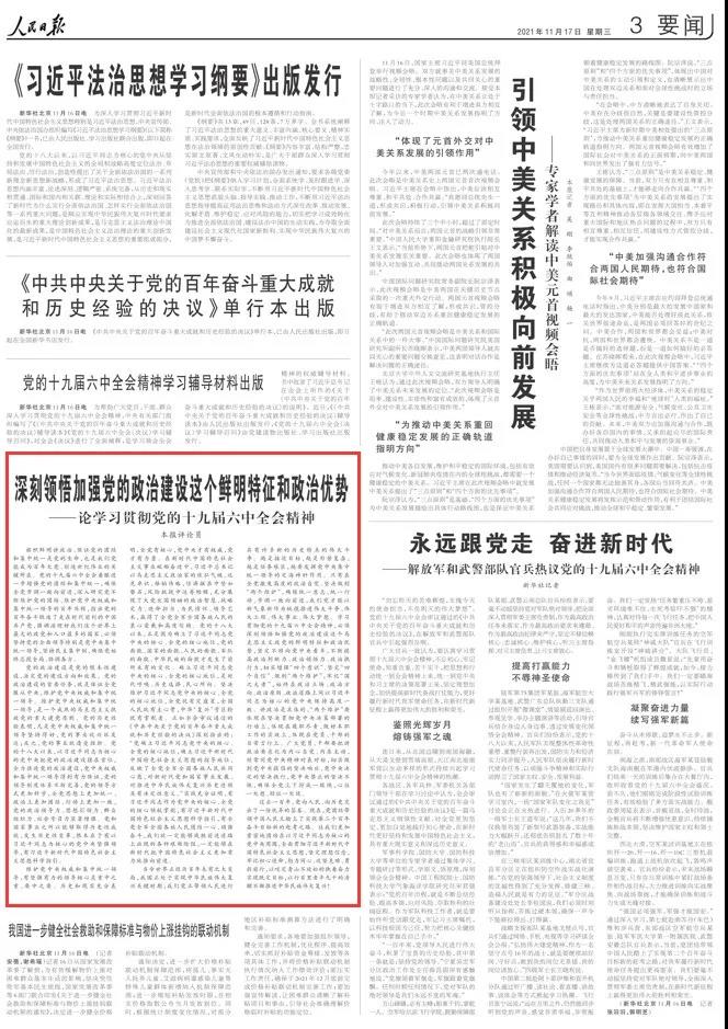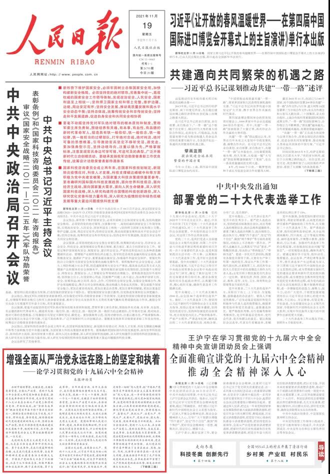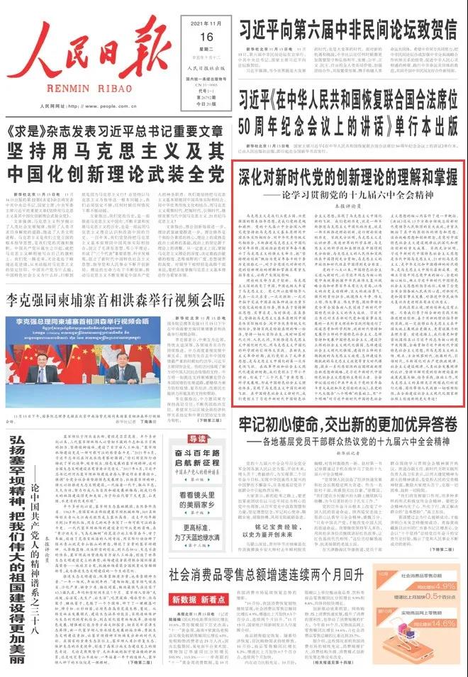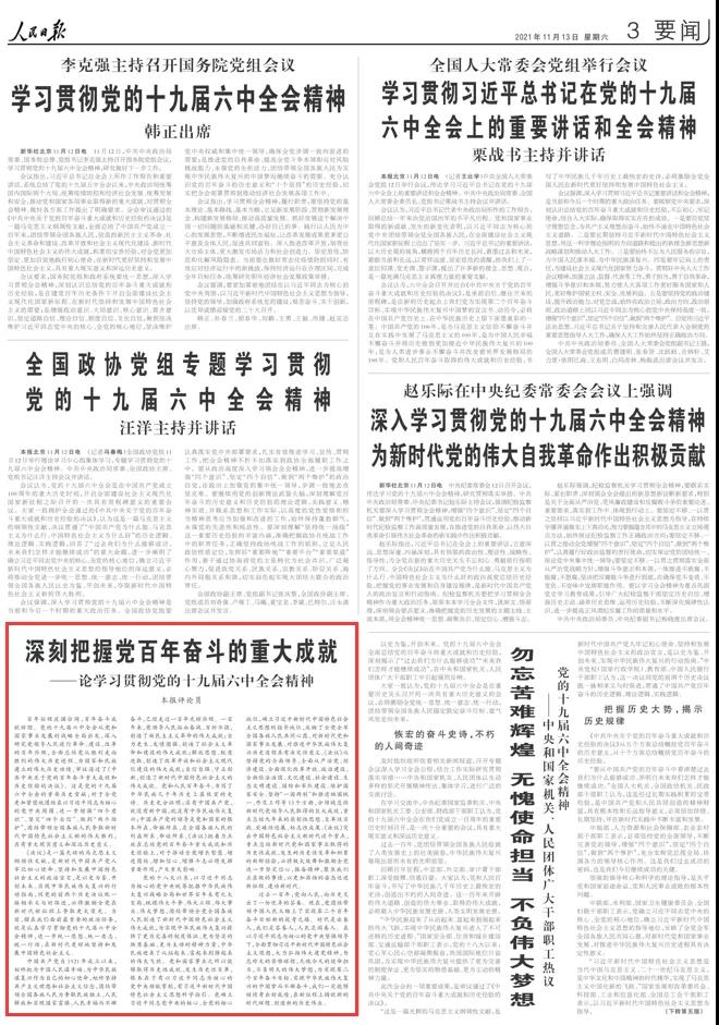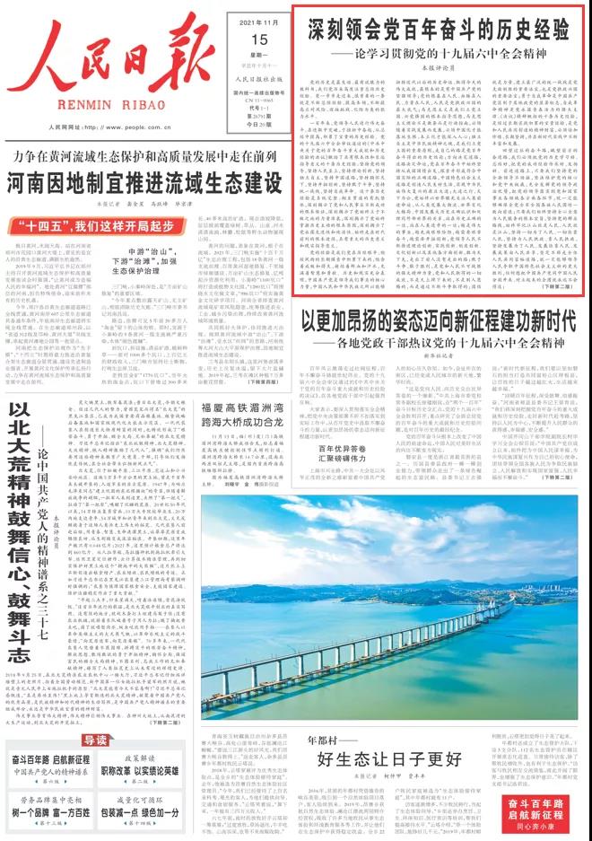 重磅!人民日?qǐng)?bào)八論學(xué)習(xí)貫徹黨的十九屆六中全會(huì)精神