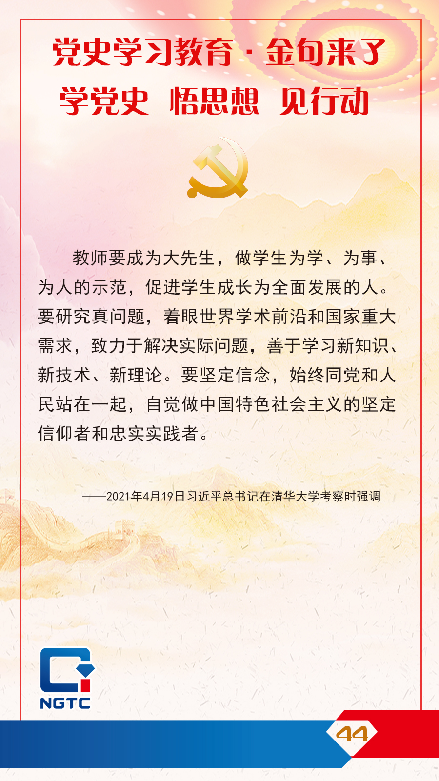 黨史學(xué)習(xí)教育·金句來了丨教師要成為大先生,做學(xué)生為學(xué)、為事、為人的示范
