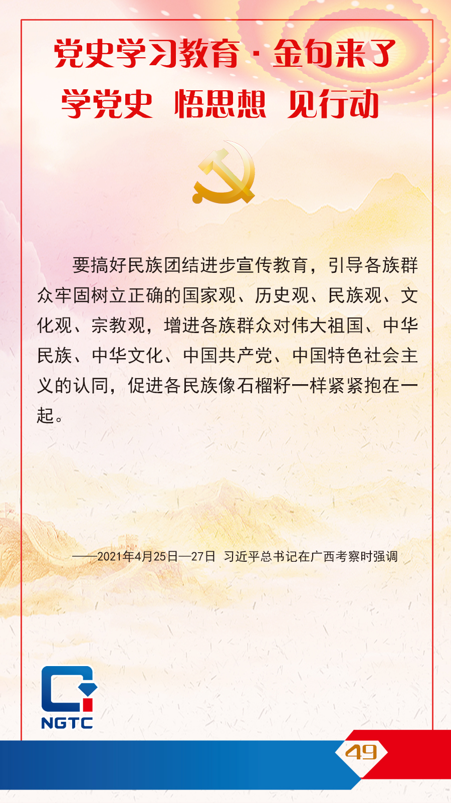 黨史學(xué)習(xí)教育·金句來了丨引導(dǎo)各族群眾牢固樹立正確的國家觀、歷史觀、民族觀、文化觀、宗教觀