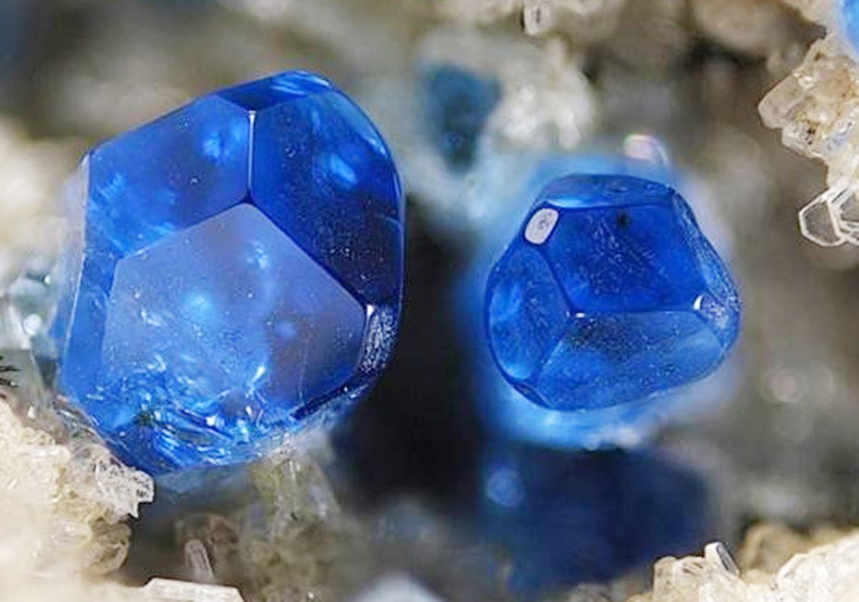藍方石是方鈉石族礦物中的一個稀有品種,主要成分為復合硅酸鈉鉀,原礦形狀為小圓粒,主要形成于響石等堿性火山巖中。艷藍色的透明寶石級藍方石單晶體至今只見出現于德國埃菲爾山地區(qū)。