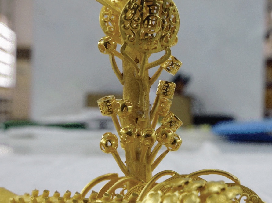 最后將“金樹”上的產(chǎn)品剪下,并對產(chǎn)品進(jìn)行修整,使其達(dá)到造型優(yōu)美、表面平整。經(jīng)過表面工藝、車花、成品拋光等流程后,倒模工藝的金飾品就制作完成了。