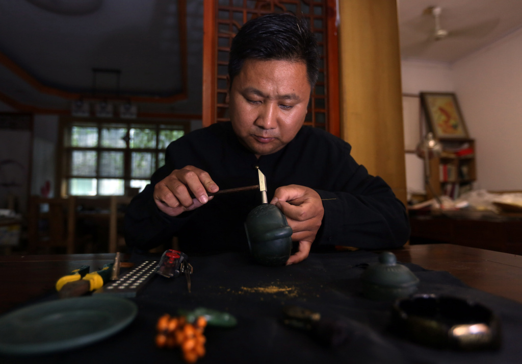 玉雕掏膛。王耀 攝