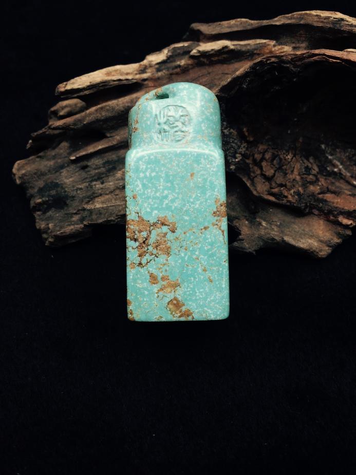 美國藍(lán)月亮綠松石,迷人的淡藍(lán)色令人愛不釋手,外觀極像湖北綠松石,部分具有銀灰色的鐵線,可以與湖北綠松石區(qū)別。