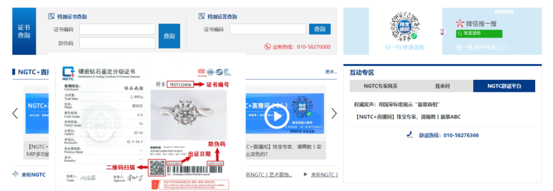 珠寶國檢(NGTC)官網(wǎng)(m.51bengfa.com)證書查詢專欄截圖