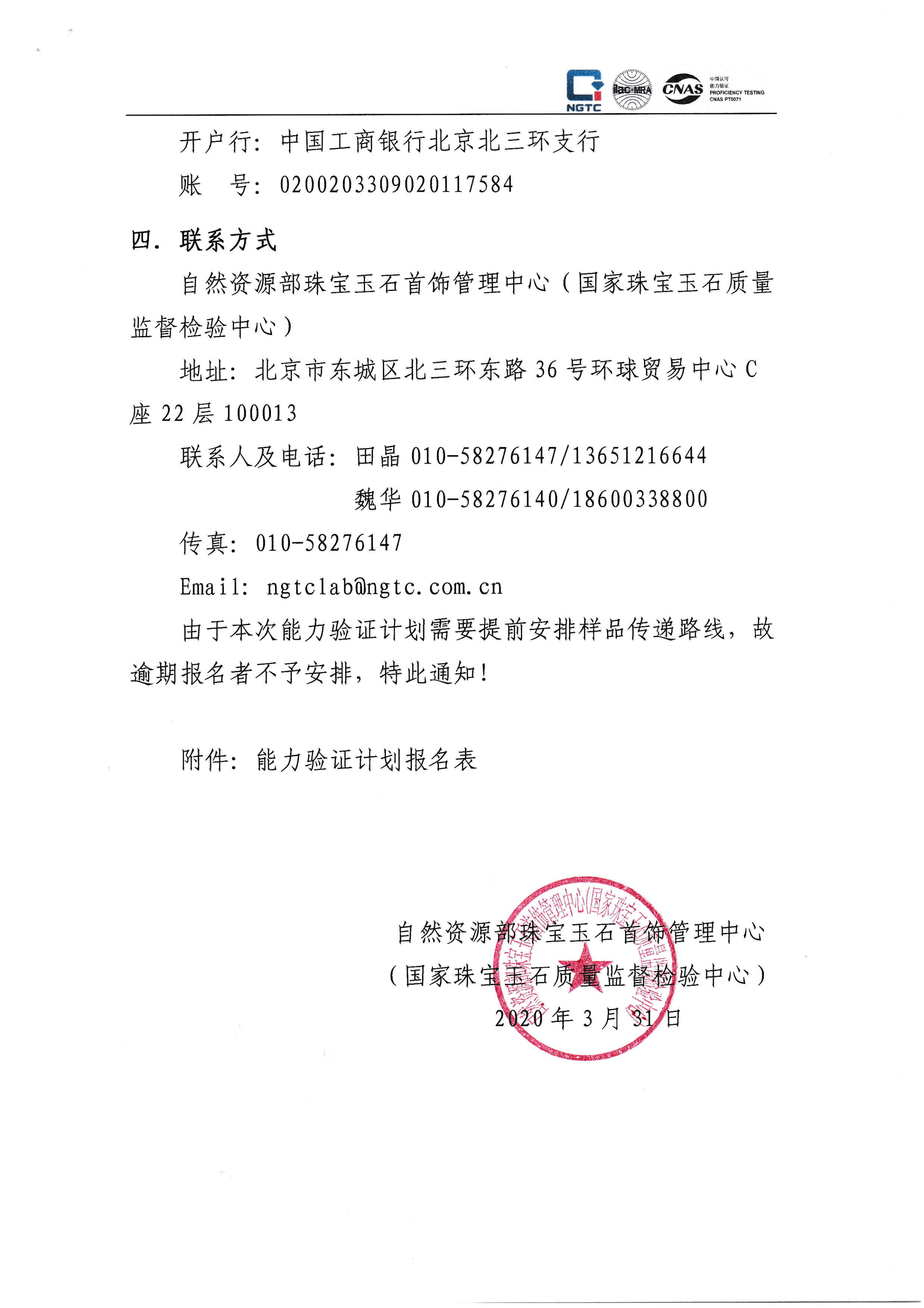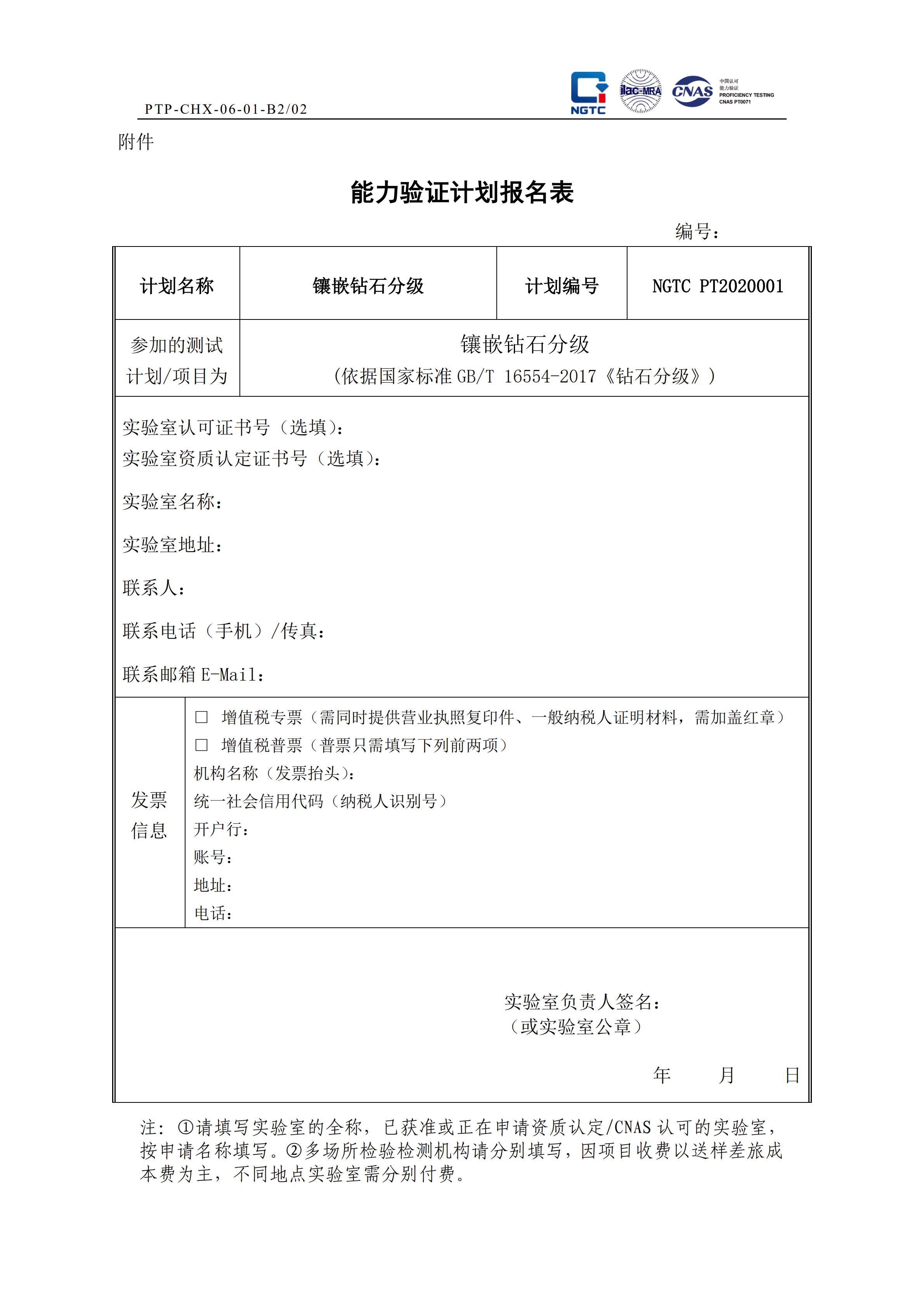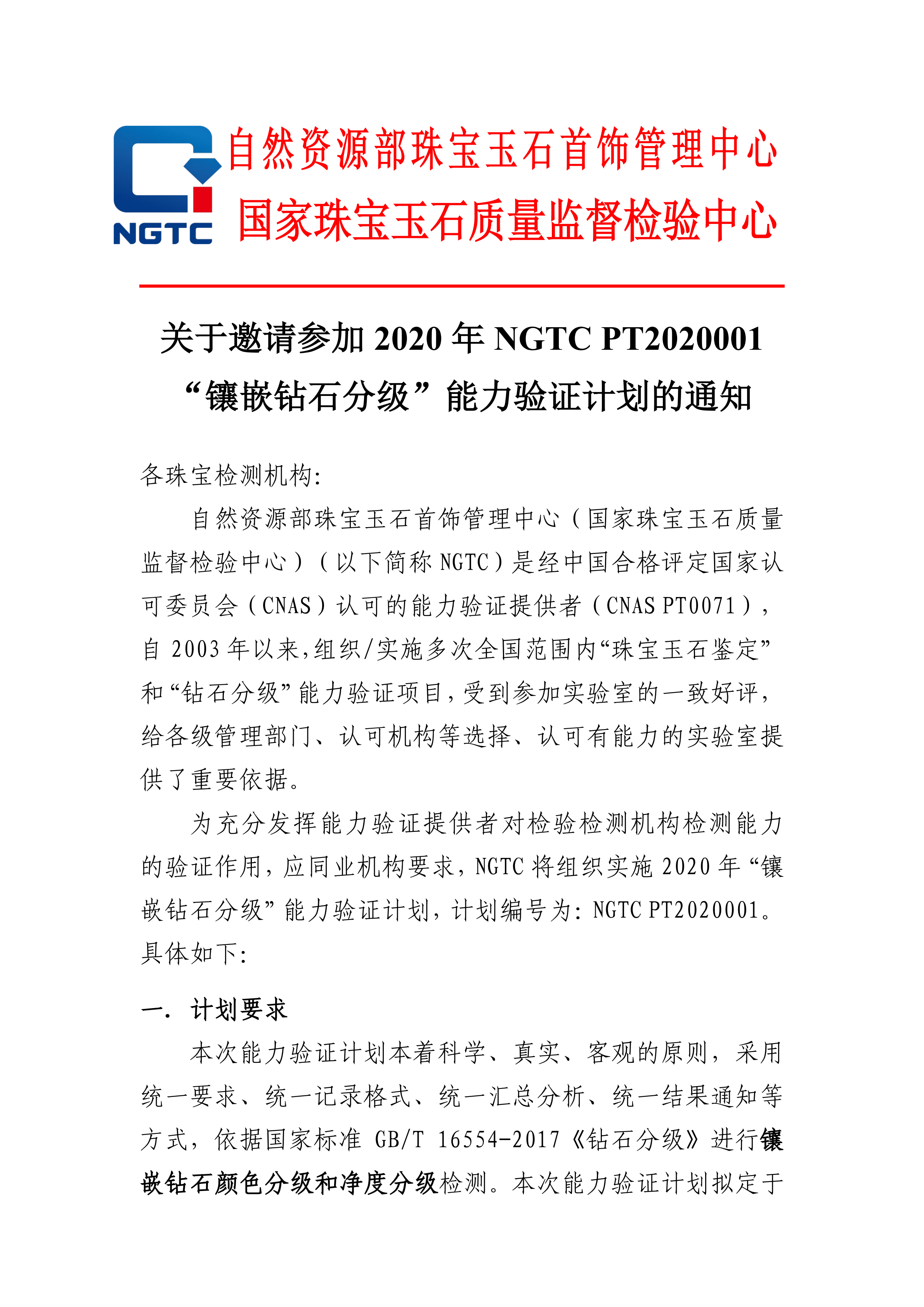 關(guān)于邀請(qǐng)參加 2020年 NGTC PT2020001“鑲嵌鉆石分級(jí)”能力驗(yàn)證計(jì)劃的通知