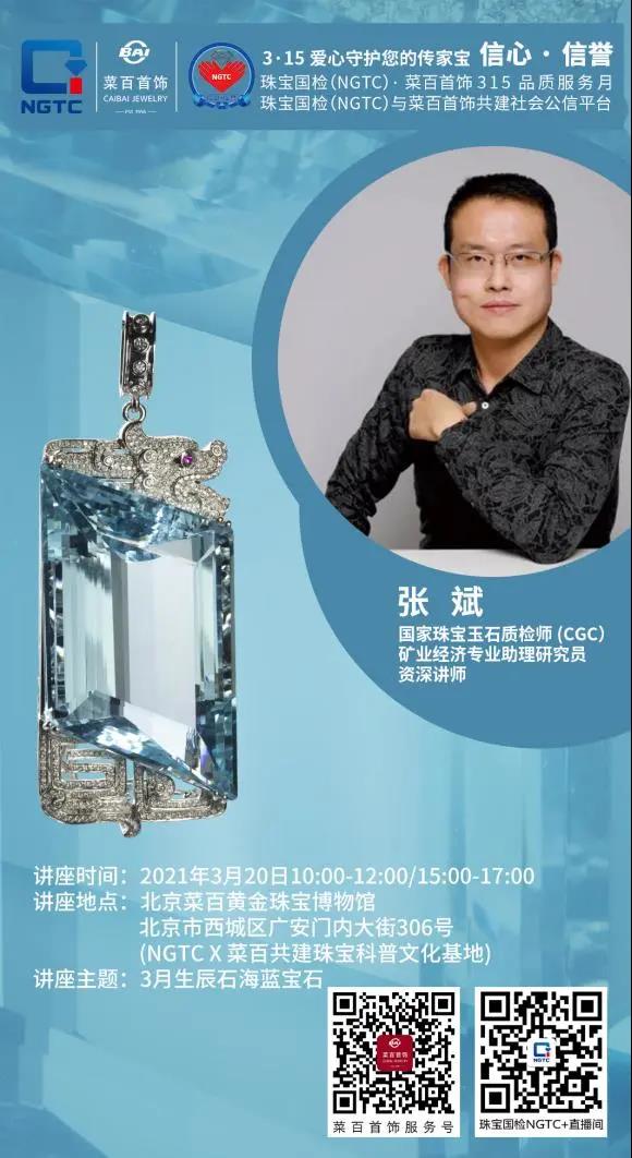 珠寶國檢(NGTC)與菜百共建社會公信平臺專為少兒科普開辟的“珠寶國檢(NGTC)與菜百科普文化基地”,將在2021年3月20日,春分節(jié)氣,迎著明媚的春光,與北京的小朋友們相約菜百。NGTC國檢珠寶培訓(xùn)中心資深講師、商學(xué)院副院長張斌在菜百總店將以珠寶國檢(NGTC)權(quán)威的科研、檢測、教育成果為基礎(chǔ),為近百位北京師生家長帶來寶石礦物學(xué)科普講座——3月生辰石·海藍寶石。精彩內(nèi)容涵蓋如下:
