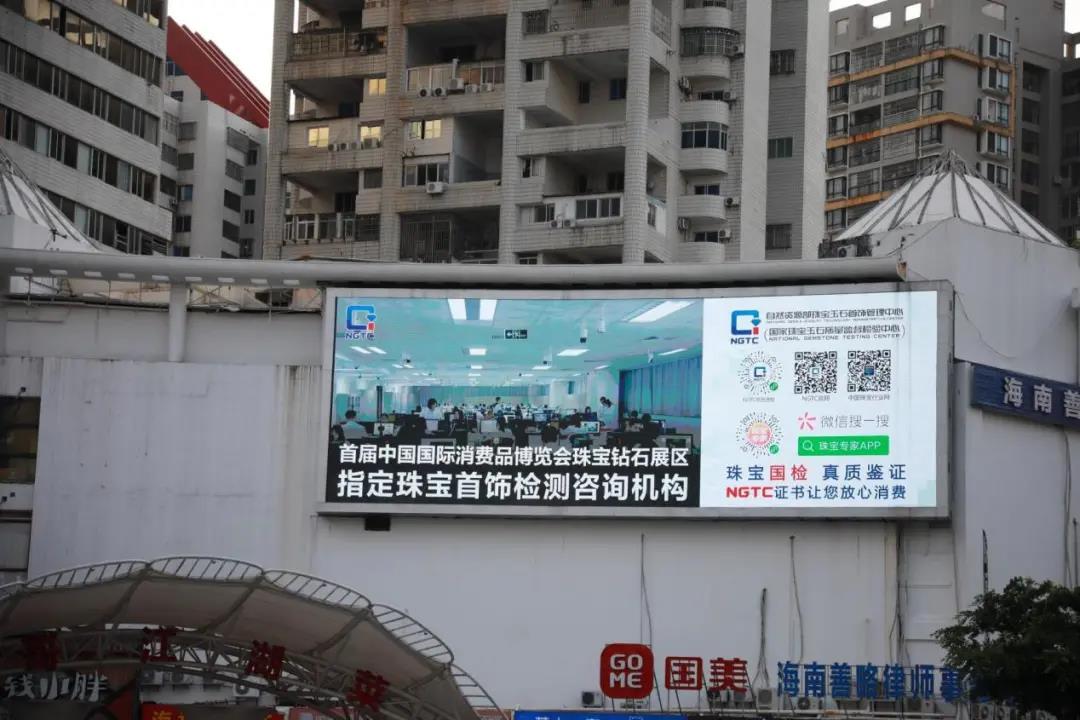 5月4日-10日,珠寶國檢(NGTC)都市大屏配合首屆中國國際消費(fèi)品博覽會(huì)(下簡稱消博會(huì))同期亮相??谏倘?,分別在國貿(mào)京茂百貨大屏、東方廣場大屏、南亞廣場大屏、名門廣場大屏進(jìn)行形象宣傳。