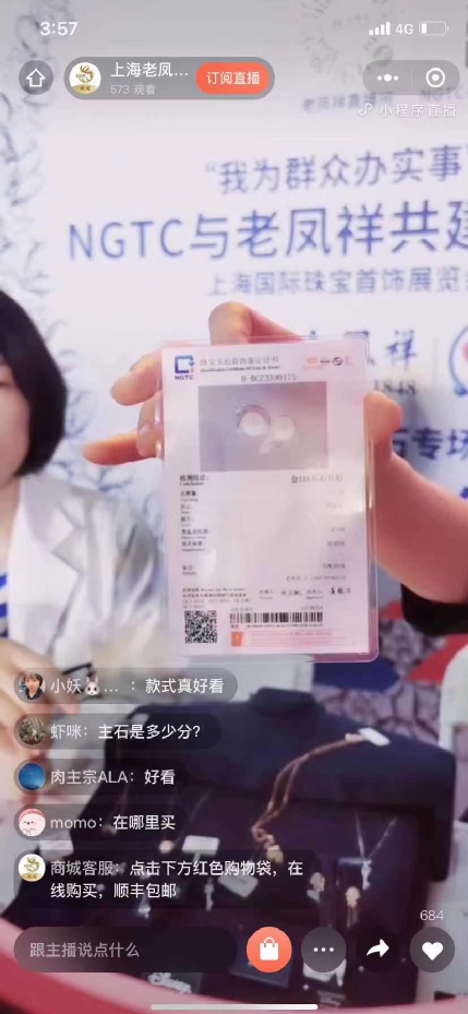 活動由NGTC+直播間聯(lián)合老鳳祥VIP群直播在線同步播出,雙方依托各自在科學研究、檢測服務、教育培訓、科普宣傳、產(chǎn)品設計、文創(chuàng)開發(fā)方面的優(yōu)勢,為廣大消費者答疑解惑,進行珠寶文化消費引導?;顒游?190余人次在線收看,線下觀眾約150人。