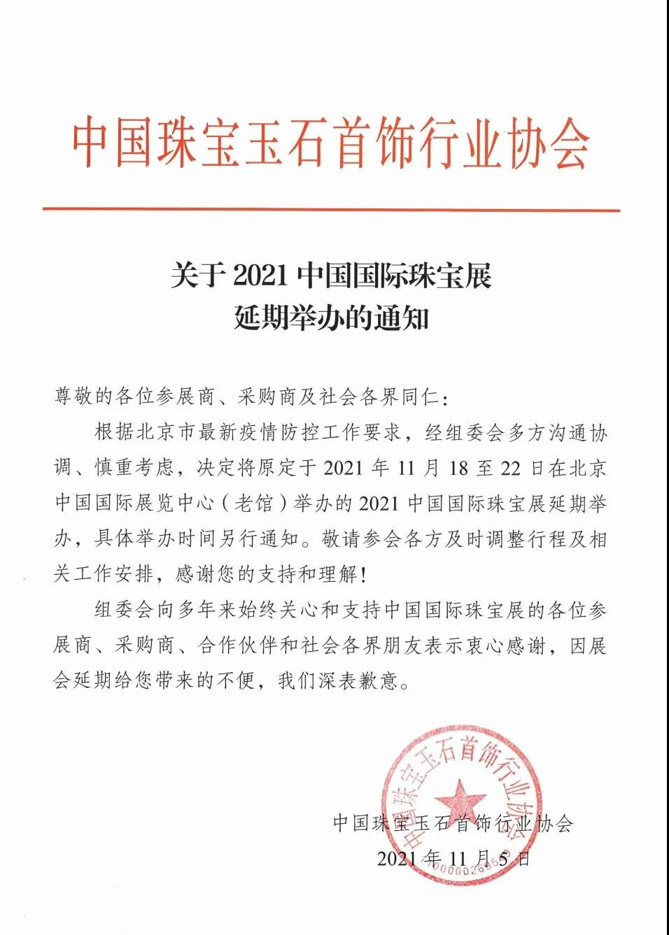 關(guān)于2021中國(guó)國(guó)際珠寶展延期舉辦的通知