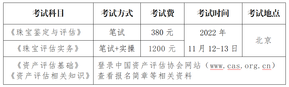 2022年資產(chǎn)評估師(珠寶)職業(yè)資格全國統(tǒng)一考試珠寶評估專業(yè)科目報名簡章