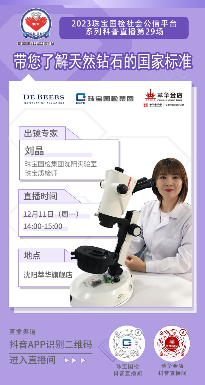 【2023珠寶國(guó)檢社會(huì)公信平臺(tái)系列科普直播第二十九場(chǎng)】直播預(yù)熱:帶您了解天然鉆石的國(guó)家標(biāo)準(zhǔn)