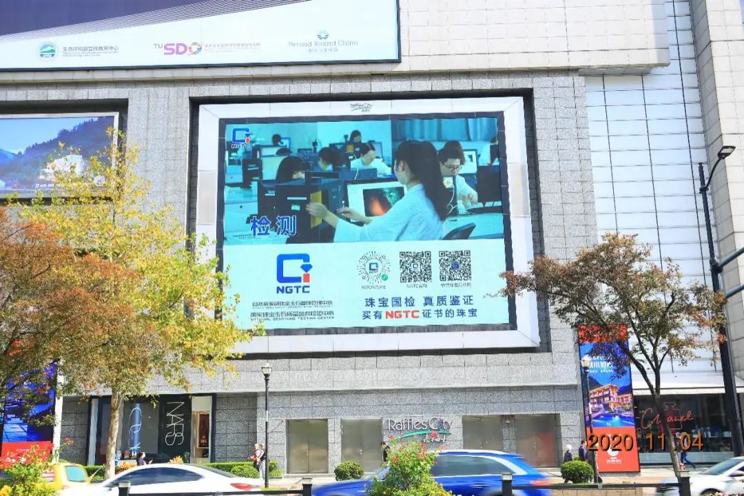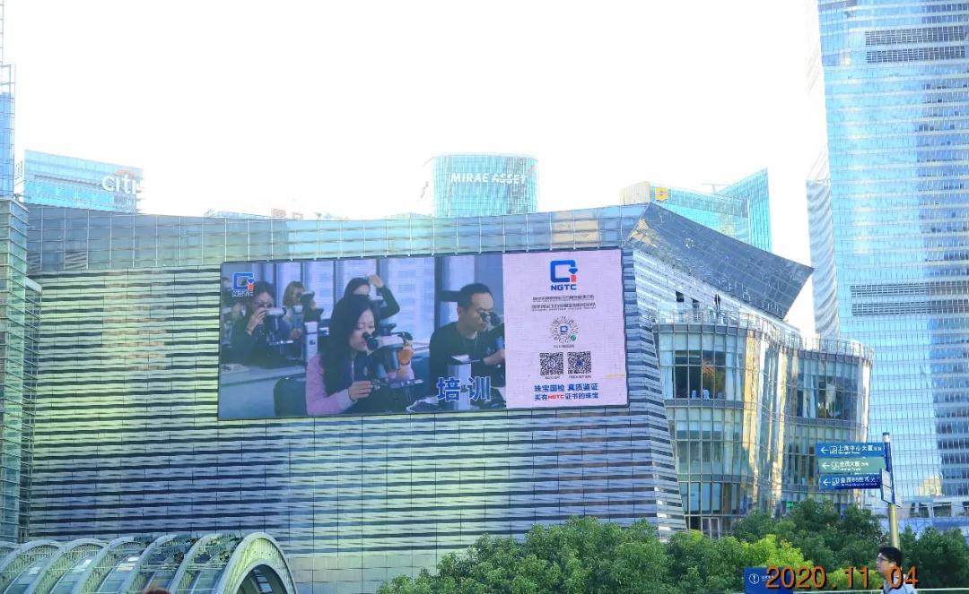 11月4日-10日,上海人民廣場來福士大屏、浦東世紀大道金茂大廈屏、南京東路第一百貨大屏幕上,同期展示珠寶國檢(NGTC)檢測、培訓等服務。大家通過掃描屏幕中的二維碼,即可詳細了解珠寶國檢(NGTC)為消費者提供的專業(yè)服務。