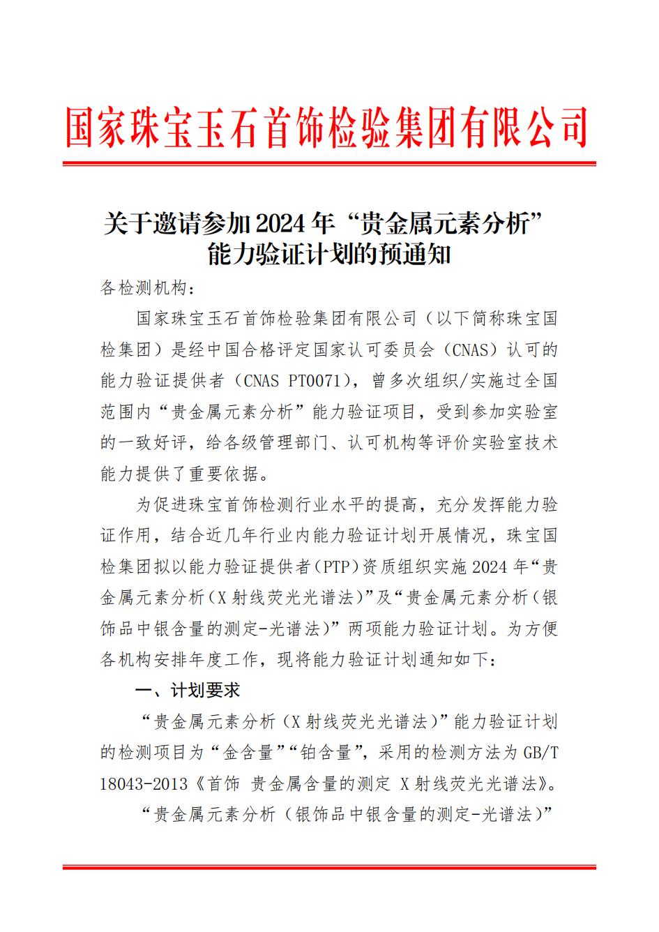 關(guān)于邀請參加2024年“貴金屬元素分析”能力驗證計劃的預(yù)通知