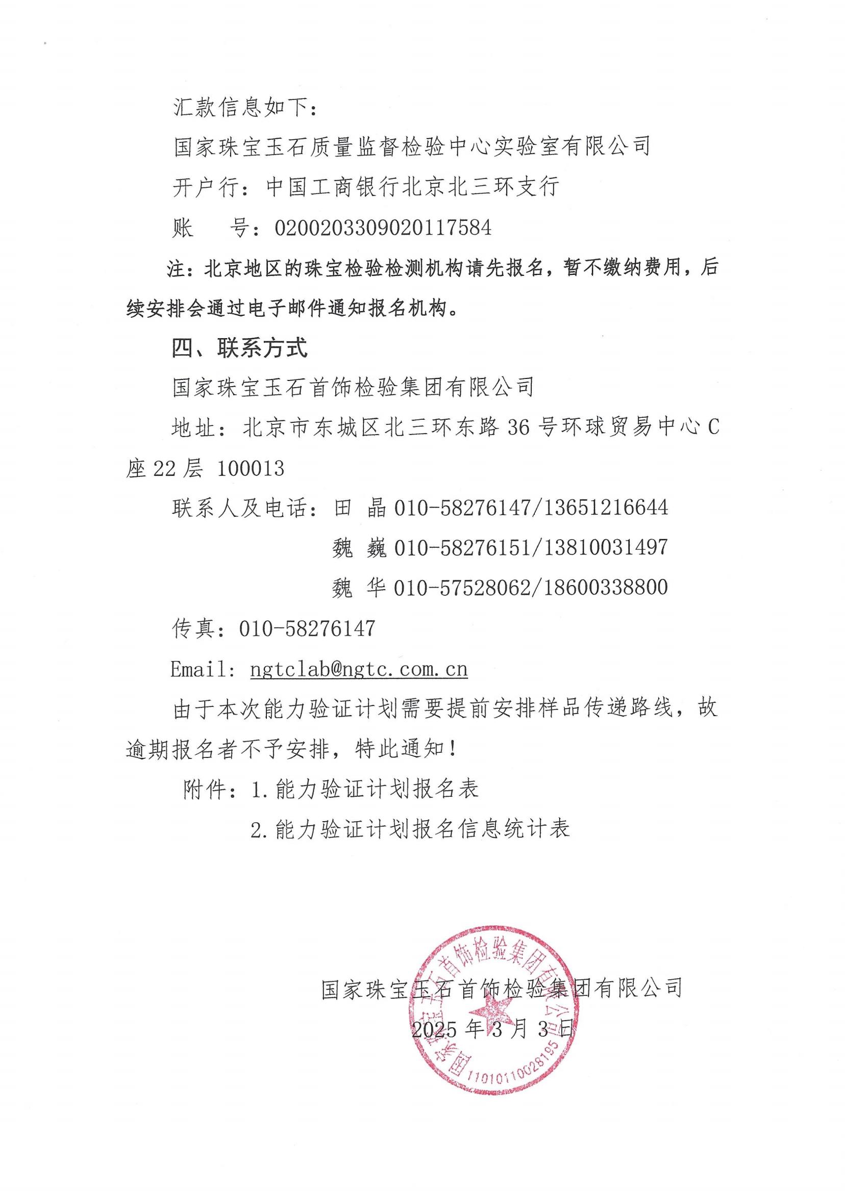 關(guān)于邀請參加 2025 年 NGTC PT2025001“珠寶玉石檢測”及 NGTC PT2025002“鑲嵌鉆石分級”能力驗證計劃的通知