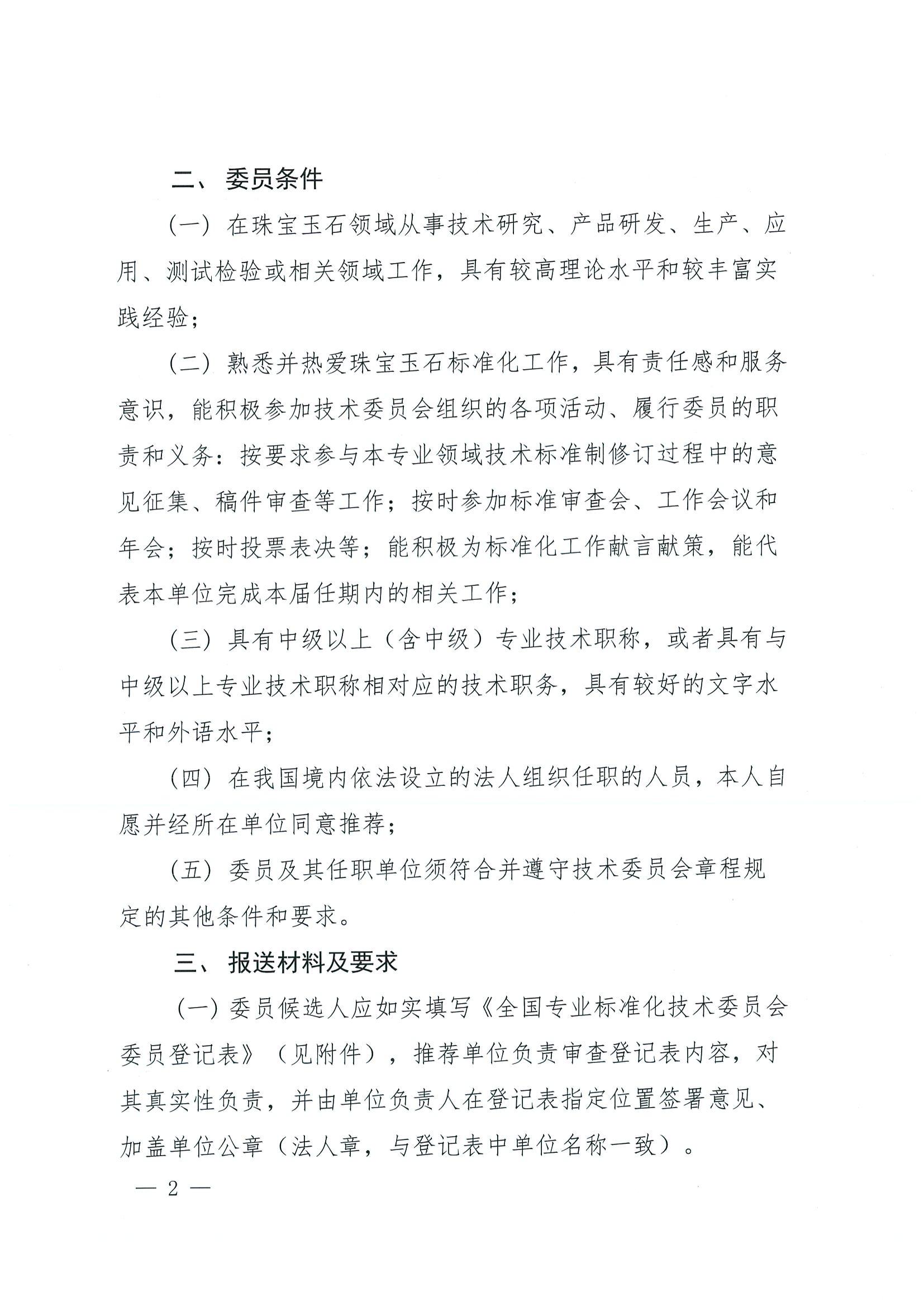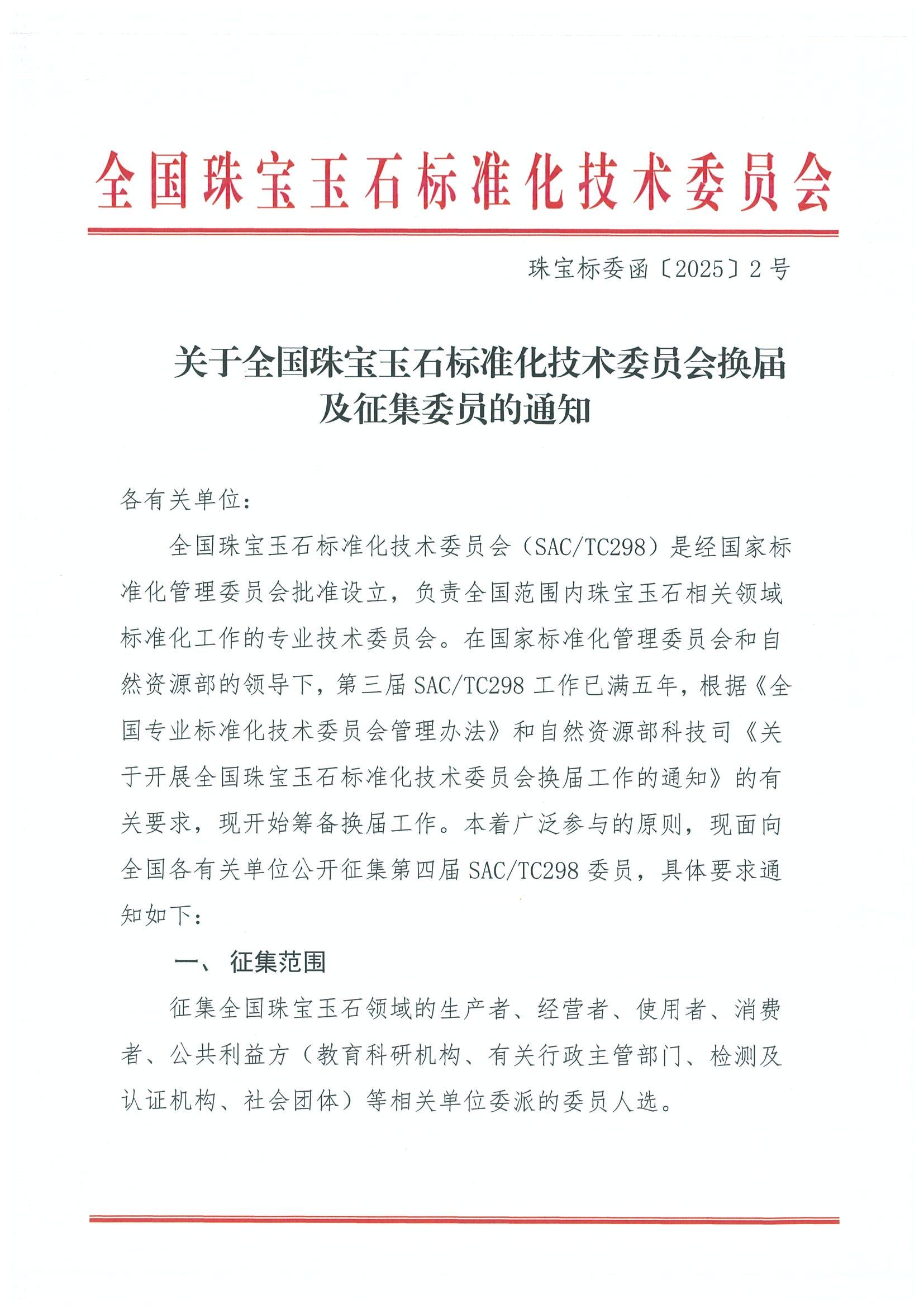 關(guān)于全國珠寶玉石標準化技術(shù)委員會換屆及征集委員的通知