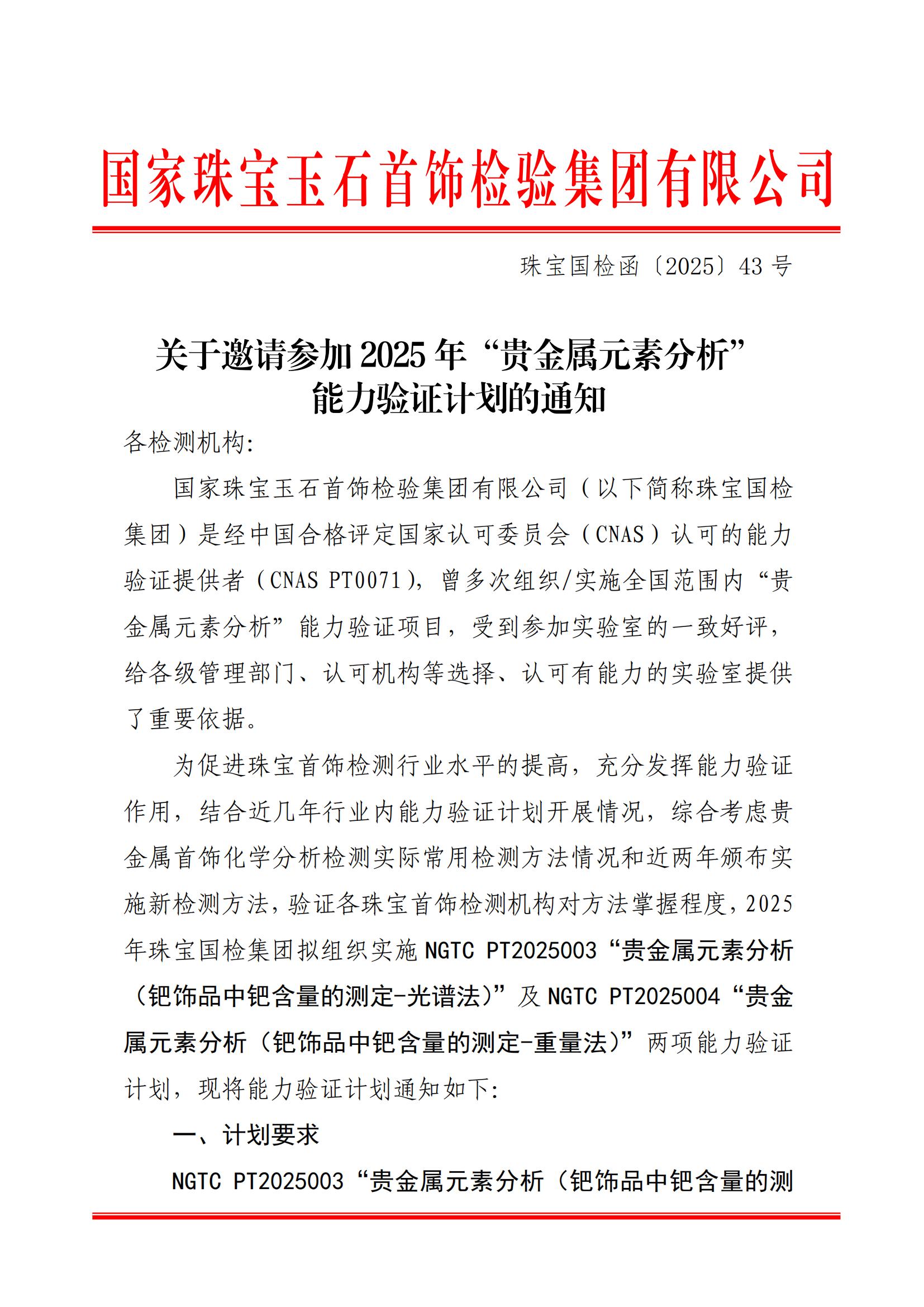 關于邀請參加 2025 年“貴金屬元素分析”能力驗證計劃的通知