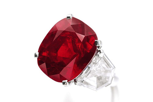 緬甸作為古老的紅寶石產(chǎn)地,幾個世紀以來陸續(xù)發(fā)現(xiàn)過許多大顆粒、高品質的紅寶石。2015年5月,一顆25.59克拉的緬甸“鴿血紅”紅寶石在拍賣會上以2,625萬瑞士法郎(約合3,033萬美元)落槌成交,創(chuàng)下了當時紅寶石最高成交價紀錄及非鉆石類寶石最高成交價紀錄。這顆名為“日出紅寶石”(The SunriseRuby)的晶體,曾是法國珠寶商卡地亞的收藏品,這顆紅寶石的成交價也刷新了當時卡地亞珠寶的拍賣成交價紀錄。