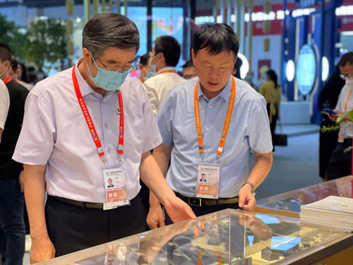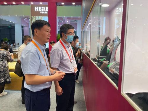 消博會開展首日,中寶協(xié)會長,珠寶玉石首飾國檢集團(tuán)(以下簡稱:“珠寶國檢”)黨委書記,董事長葉志斌,中寶協(xié)副會長、秘書長畢立君率中寶協(xié)與珠寶國檢代表團(tuán)一行到七彩云南翡翠展廳進(jìn)行參觀指導(dǎo)。