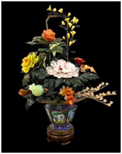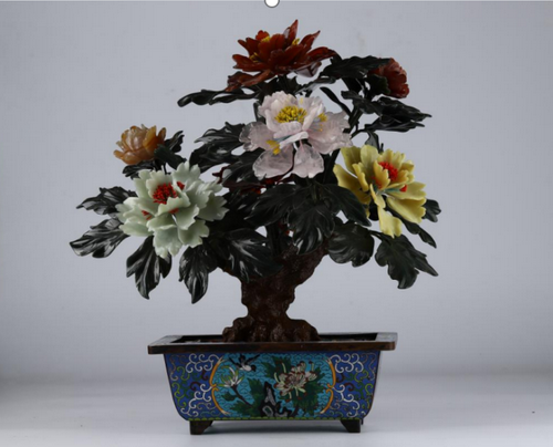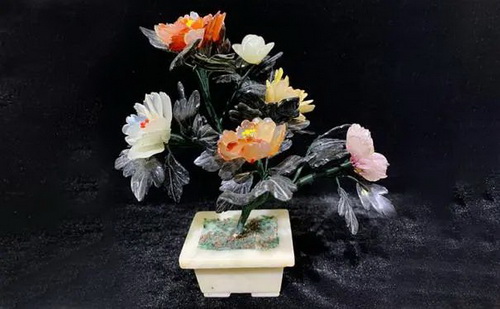 在此次參展的玉雕作品中,具有古代宮廷玉雕風(fēng)格的“玉石盆景”將精彩亮相。這些“玉石盆景”運(yùn)用了碧玉、岫玉、瑪瑙、松石、芙蓉石、東陵石、水晶、紫水晶等玉料,工藝步驟復(fù)雜,玉料顏色豐富多彩,其上花朵與枝葉造型栩栩如生。